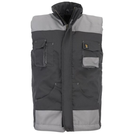 Bezrękawnik wykonany z tkaniny 65 % poliester / 35 % bawełny o gramaturze 260 g/m² ocieplina. Zasuwany na zamek błyskawiczny, osłonięty listwą na rzepy. Dwie kieszenie na klatce piersiowej w tym jedna kieszeń na smartphone i mała długa kieszonka np. na ołówki, po drugiej stronie kieszeń zapinana na rzep oraz dwie dolne kieszenie. Rygle wzmacniające, podwójne szwy zwiększające wytrzymałość oraz regulacja na guzik w pasie. Wzmocnienia typu OXFORD. Wyprodukowano w Polsce. Rozmiary: 46 - 62. Dostępne w kolorach: szary, moro, niebieski, safari, żółty HV oraz pomarańczowy HV (dużej widoczności z dodatkowymi taśmami odblaskowymi). Możliwość skompletowania odzieży roboczej PROMAN.