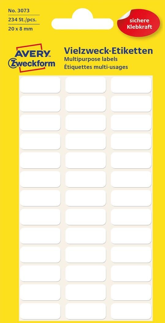 | Nazwa B2B | Białe miniEtykiety AVERY ZWECKFORM do opisywania ręcznego 234 etyk./op., 20 x 8 mm, białe |
