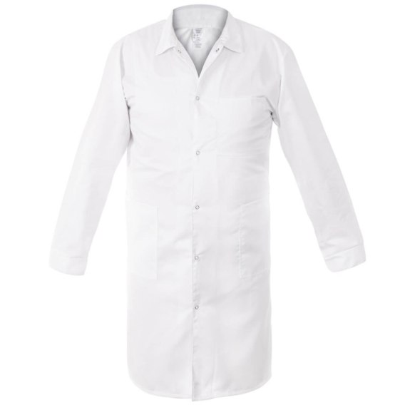 FARTUCH ROBOCZY ADAM 65% poliester, 35% bawełna o gramaturze 195g/m². Zapinany na napy. Trzy praktyczne kieszenie, jedna w części górnej i dwie w części dolnej. Fartuch wykończony kołnierzykiem, mankiety zapinane na napy, dodatkowy pasek umożliwia dopasowanie fartucha. Odpowiedni do prania przemysłowego. Fartuch znajdzie zastosowanie m.in. w branży medycznej, kosmetycznej, chemicznej.