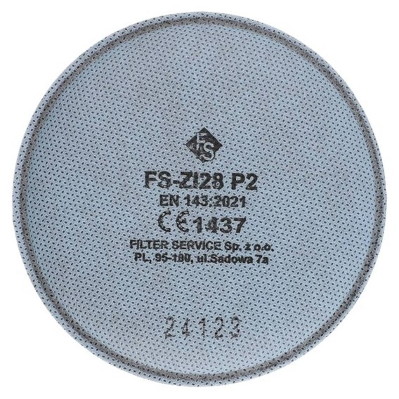 FILTR PRZECIWPYŁOWY FS ZI28 P2 Filtry posiadają warstwę specjalnej włókniny z węglem aktywnym. Dzięki niej mogą być stosowane w środowiskach, gdzie występują nieprzyjemne zapachy. Zastosowanie: Zamiennik dla produktu 3M 2128 Przeznaczone są do ochrony układu oddechowego - po skompletowaniu z półmaskami 3M serii 6000 i 7500 - przed aerozolami z cząstek stałych lub aerozolami na bazie wody (pył, dym) oraz aerozolami z ciekłą fazą rozproszoną (mgły), o ile stężenie fazy rozproszonej aerozolu nie przekracza 12 x NDS. Dodatkowo filtry FS-ZI28 P2 dzięki zastosowanej w nich warstwie sorpcyjnej zawierającej węgiel aktywny są przeznaczone do ochrony układu oddechowego przed parami organicznymi poniżej NDS. Dodatkowe zalety: Mocowane do części twarzowej za pomocą systemu bagnetowego. Można je łączyć z pochłaniaczami 3M serii 6000 stosując łącznik 3M-502. Zapewniają skuteczność filtracji na poziomie minimum 94%. Są lekkie i zapewniają wysoki komfort użytkowania. Skład: Konstrukcja filtra: - Igłowana włóknina poliestrowa - Włóknina polipropylenowa typu melt blown - Włóknina z węgla aktywnego - Włóknina osłonowa Elementy dodatkowe: - Złącze bagnetowe Kategoria: Filtry przeciwpyłowe Klasa: P2 NDS: 12 x NDS Norma: EN 143:2021 Certyfikat: wydany przez CIOP PIB zgodny z UE/918/2023/1437 wydanie 1 Spełniają wymagania Rozporządzenia Parlamentu Europejskiego i Rady (UE) 2016/425 z dnia 9 marca 2016 w sprawie środków ochrony indywidualnej.