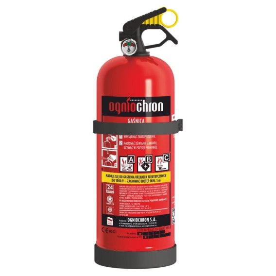 Gaśnica proszkowa 2 kg zaprojektowana dla zabezpieczenia samochodów dostawczych i ciężarowych, w obiektach użyteczności publicznej, pomieszczeniach biurowych, produkcyjnych, magazynach, garażach. Łatwa w obsłudze, zapewnia szybkie i skuteczne gaszenie. Zawór odcinający i wskaźnik ciśnienia ułatwiający kontrolę i obsługę serwisową. Zawór skonstruowany tak, aby umożliwić czasowe przerwanie gaszenia. Zbiornik nie podlega kontrolnym badaniom UDT. Możliwość wielokrotnego napełniania. Zbiornik pokryty poliestrową farbą odporną na promieniowanie UV, wewnątrz powłoka antykorozyjna. Skuteczność gaszenia 13A 89B C, czas działania 9 s. Zakres temperatur stosowania -30OC - 60OC. Nadaje się do gaszenia urządzeń elektrycznych do 1000V.Zgodna z ISO 9001. Spełnia wymagania normy europejskiej EN3 oraz Dyrektywy bezpieczeństwa PED 2014/68/UE. Produkt polski.