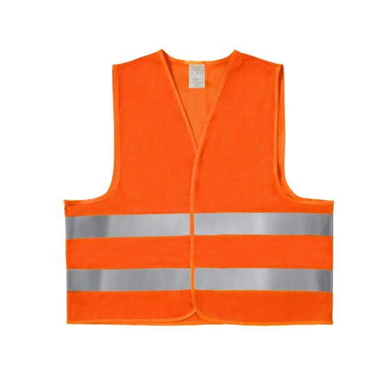 Kamizelka ostrzegawcza wykonana w 100% z poliestrowej dzianiny siatkowej o gramaturze 120 g/m², posiada dwa pasy odblaskowe dookoła korpusu. Zapinana na rzep. Kat. II Certyfikat UE CE, zgodność z normą EN ISO 20471:2013