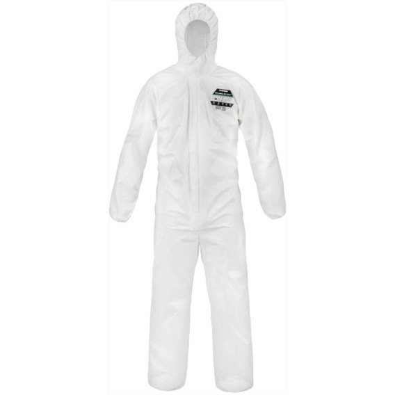 KOMBINEZON OCHRONNY LAKELAND MICROMAX NS Kombinezon ochronny ograniczonego użytkowania Typu 5 i 6 niskopylący, lekki. Wykonany z tkaniny typu film mikroporowaty, 65g/m2. Kaptur kombinezonu wykonany z trzech kawałków. Posiada dwuczęściowy klin w kroku, poprawiający komfort i wytrzymałość. Zapinany na dwustronny zamek błyskawiczny. Otwór i elastyczne uszczelnienie kaptura pozwala nosić różnego rodzaju maski i inny sprzęt ochrony dróg oddechowych. Elastyczne ściągacze rękawów, nogawek i w talii dobrze dopasowują kombinezon do ciała. Może być stosowany w przemyśle farmaceutycznym, laboratoriach, przy pracach wodociągowo-kanalizacyjnych, w rolnictwie i przemyśle spożywczym, przy malowanie natryskowym i lakiernictwie samochodowym, przy pracach wymagających zwiększonej ochrony przed agresywnymi cieczami, rozpuszczalnikami czy detergentami, w budownictwie w tym przy włóknach szklanych, wełnach mineralnych, włóknach azbestowych oraz przy wszystkich zmożonych pracach fizycznych, szczególnie wewnątrz pomieszczeń. Zgodność z normami EN 340:2003, EN ISO13982-1:2004/A1:2010 (Typ 5), EN 13034:2005 (Typ 6), EN 1149-5:2008 (Właściwości antyelektrostatyczne), EN 1073-2:2002 (Ochrona przed skażeniem pyłami radioaktywnymi), EN 14126:2003 Typ PB(6)-B/PB(5) Ochrona przed czynnikami biologicznymi. Kolory: biało-niebieski Rozmiar: L Opakowanie: 1 szt. w związku ze zmianą sposobu pakowania przez Producenta, kombinezony kupowane na sztuki są pozbawione opakowania jednostkowego (woreczka).