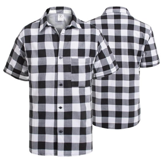 KOSZULA FLANELOWA KRÓTKI RĘKAW BIAŁO-CZARNA rozm. L