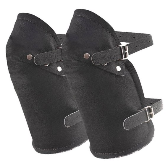 Nakolannik skórzany wykonany ze skóry bydlęcej dwoinowej wykończonej niepalnie. Łączenia itp. trwale wykończone za pomocą nitów. Średnia grubość skóry 1,4-2,4 mm. Kat. I.