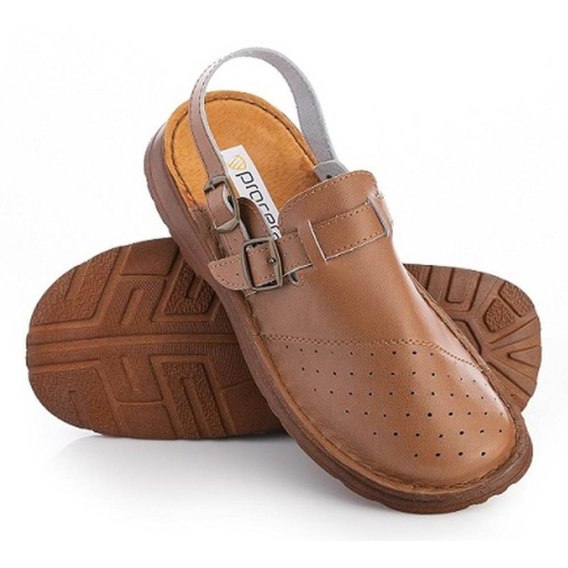 Obuwie profilaktyczne wykonane ze skóry bydlęcej pokrytej specjalną membraną ułatwiającą czyszczenie, dezynfekcję i konserwację. Cholewka zamknięta z perforacją, pasek dwufunkcyjny przekładany na piętę. Wyściółka ze skóry naturalnej. Spód o urzeźbieniu antypoślizgowym z poliuretanu, wewnętrzny profil ortopedyczny. Wierzch łączony ze spodem szyciem ręcznym. Obuwie doskonale sprawdzi się do użytkowania w placówkach służby zdrowia, handlowych, przemyśle spożywczym. Rozmiary: 40-46.