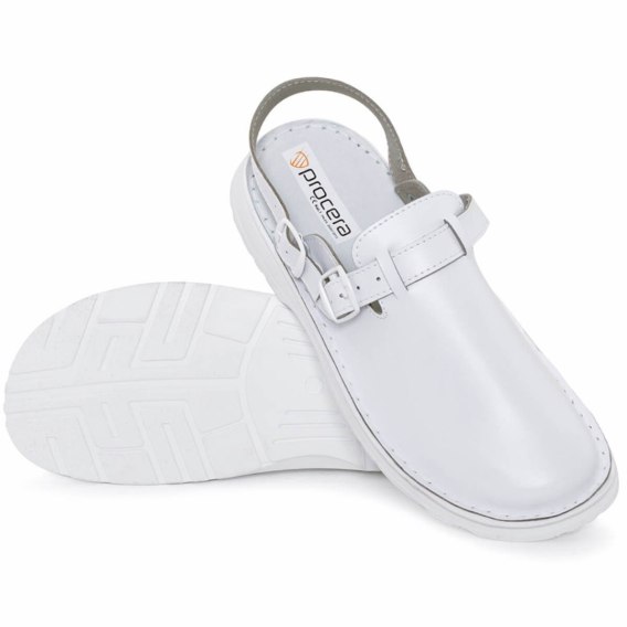 Obuwie profilaktyczne wykonane ze skóry bydlęcej pokrytej specjalną membraną ułatwiającą czyszczenie, dezynfekcję i konserwację. Cholewka zamknięta, pasek dwufunkcyjny przekładany na piętę. Wyściółka ze skóry naturalnej. Spód o urzeźbieniu antypoślizgowym z poliuretanu, wewnętrzny profil ortopedyczny. Wierzch łączony ze spodem szyciem ręcznym. Obuwie doskonale sprawdzi się do użytkowania w placówkach służby zdrowia, handlowych, przemyśle spożywczym. Rozmiary: 40-46.