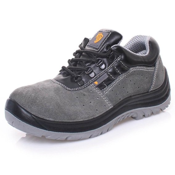 Półbuty bezpieczne RIO z metalowym podnoskiem ochronnym. Cholewka obuwia wykonana jest ze skóry zamszowej. Podeszwa z dwuwarstwowego poliuretanu PU/PU, antyelektrostatyczna. Absorpcja energii w części piętowej. Podeszwa antypoślizgowa. Wstawki z materiałów syntetycznych. Wyściółka w kolorze szarym z materiałów o właściwościach higroskopijnych. Perforacja cholewki w części bocznej zapewniająca oddychanie stopie. Głęboki protektor zapewniają wysoką stabilność obuwia i komfort chodzenia. Kategoria S1.