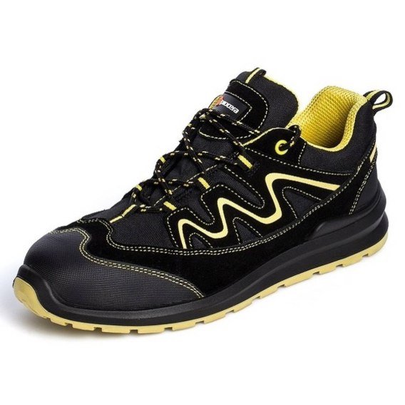 Półbuty bezpieczne STREET z metalowym podnoskiem ochronnym. Cholewka obuwia wykonana jest ze skóry welurowej i oddychającego materiału typu Cordura. Przednia i tylna część dodatkowo wzmocnione materiałem ochronnym. Podeszwa z dwuwarstwowego poliuretanu PU/PU, antyelektrostatyczna, antypoślizgowa, idealnie sprawdzająca się na wszelkiego rodzaju nawierzchniach. Absorpcja energii w części piętowej. Wyściółka w kolorze żółtym z oddychającego materiału 3D Mesh. Sportowy design. Kategoria S1.