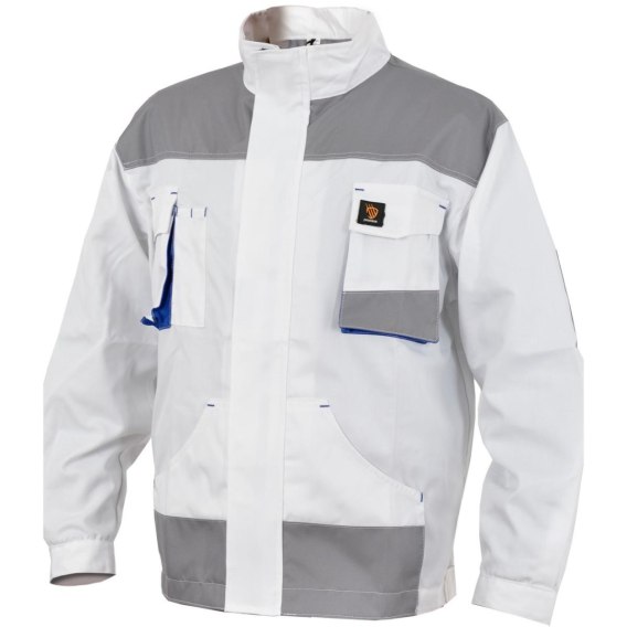 Kurtka wykonana z tkaniny 65 % poliester / 35 % bawełny o gramaturze 260 g/m² Zasuwana na zamek błyskawiczny, osłonięty listwą na rzepy. Dwie kieszenie na klatce piersiowej w tym jedna kieszeń na smartphone i dwie małe długie kieszonki np. na ołówki, po drugiej stronie kieszeń zapinana na rzep oraz dwie dolne kieszenie. Mankiety zapinane na guziki. Rygle wzmacniające i podwójne szwy zwiększające wytrzymałość. Wzmocnienia typu OXFORD. Wyprodukowano w Polsce. Rozmiary: 46 - 62. Dostępne w kolorach: niebieski, safari, biały i żółty oraz pomarańczowy HV (dużej widoczności z dodatkowymi taśmami odblaskowymi). Możliwość skompletowania pełnej odzieży roboczej PROMAN: kurtka spodnie/spodnie ogrodniczki/krótkie spodenki.