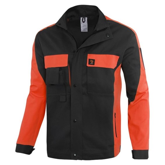 Kurtka Proplus - tkanina zasadnicza: 100% bawełna o gramaturze 250 g/m2, wstawki z materiału kontrastowego: 65% poliester, 35% bawełna o gramaturze 250 g/m2, zapinana na zamek błyskawiczny osłonięty listwą materiałową zapinaną na napy. 5 funkcjonalnych kieszeni, 2 kieszenie na klatce piersiowej w tym kieszeń na telefon, dwie kieszenie boczne zapinane na zamek błyskawiczny. Dodatkowa regulacja obwodu pasa. Rygle wzmacniające i podwójne szwy zwiększające wytrzymałość. Rozmiary od 48-62.