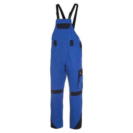 Spodnie ogrodniczki Proplus - tkanina zasadnicza: 100% bawełna o gramaturze 250 g/m2, wstawki z materiału kontrastowego: 65% poliester, 35% bawełna o gramaturze 250 g/m2. 10 funkcjonalnych kieszeni w tym kieszeń tylna, 2 kieszenie przednie (jedna podwójna) 4 kieszenie boczne w tym kieszeń na telefon i calówkę oraz kieszeń typu bojówka oraz 2 kieszenie na bawecie, jedna z przegródkami np. na ołówek.Dodatkowa regulacja obwodu pasa. Rygle wzmacniające i podwójne szwy zwiększające wytrzymałość. Wysokiej jakości guma szelkowa i klamry. Rozmiary od 48-62.