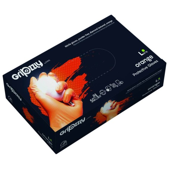 RĘKAWICE OCHRONNE, NITRYLOWE BEZPUDROWE POMARAŃCZOWE 50 SZT. - GRIPZZLY ROZM. XXL