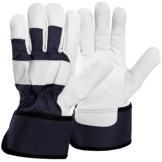 Rękawice X-SUPERIOR wykonane w części chwytnej z jednego kawałka najwyższej jakości licowej skóry koziej, wierzch wykonany z tkaniny w kolorze granatowym, ze skórzanym wzmocnieniem w linii kości śródręcza. Zakończone usztywnianym mankietem z dodatkowym wzmocnieniem. Całolicowe, wypodszewkowane w części chwytnej. EN 21420:2020, EN 388:2016 A1:2018. Opakowanie: karton 12/120. Kolor: granatowy/biały.