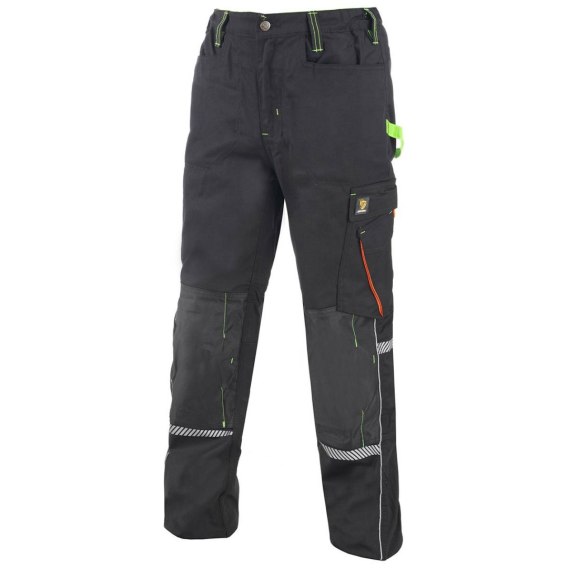 Spodnie PIONEER wykonane z wysokiej jakości tkaniny w składzie bawełna 35% i poliester 65% o gramaturze 245 g/m² o nowoczesnym wzornictwie. Wiele funkcjonalnych kieszeni w tym kieszenie przednie, kieszenie tylne kryte patką na rzep, kieszeń typu bojówka, taśma do zawieszenia narzędzi typu młotek itp. Wzmocnienia z materiału zabezpieczającego przed przetarciem na kieszeniach i kolanach z możliwością zastosowania wkładek nakolannikowych. Dodatkowa regulacja obwodu pasa. Rygle wzmacniające i potrójne szwy zwiększające wytrzymałość. Dodatkowe elementy odblaskowe. Każda para spodni pakowana w osobne opakowanie z zawieszką. Rozmiary od S/48-2XL/58.