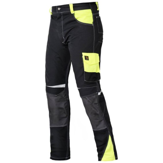 Spodnie wykonane z wysokiej jakości tkaniny typu "RIP-STOP" o składzie: 35% bawełna i 65% poliester o gramaturze 240 g/m^2. Posiadają wiele funkcjonalnych kieszeni, w tym dwie kieszenie przednie, kieszeń typu cargo osłonięta klapą na rzep, kieszeń na calówkę oraz dwie kieszenie tylne. Wzmocnienia z materiału zabezpieczającego przed przetarciem na kolanach, z możliwością zastosowania wkładek nakolannikowych. Tkanina "RIP-STOP" zwiększa odporność na rozdarcie i przetarcia, a rygle wzmacniające i podwójne szwy zwiększają wytrzymałość. Elementy odblaskowe w okolicach kolan z przodu oraz z tyłu. Rozmiary: od 46 do 60