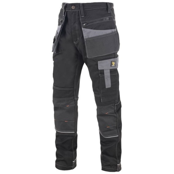 Spodnie TECHNIC wykonane z trwałej, wysokiej jakości tkaniny w składzie bawełna 35% i poliester 65% o gramaturze 310 g/m² o nowoczesnym fasonie z wstawką z materiału elastycznego która znacznie poprawia komfort noszenia oraz dopasowanie. Wiele funkcjonalnych kieszeni, w tym kieszenie przednie, kieszenie tylne kryte patką na rzep, kieszeń typu bojówka, taśma do zawieszenia narzędzi typu młotek itp. Wzmocnienia z materiału zabezpieczającego przed przetarciem na kieszeniach i kolanach z możliwością zastosowania wkładek nakolannikowych. Dodatkowe elementy odblaskowe. Rygle wzmacniające i potrójne szwy zwiększające wytrzymałość. Każda para spodni pakowana w osobne opakowanie z zawieszką. Rozmiary od S/48-2XL/58.