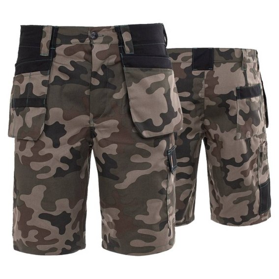 Spodnie monterskie krótkie PROMONTER 260. Spodnie wykonane z wytrzymałej na rozdzieranie i tarcie tkaniny typu Twill o składzie 65% z poliester i 35% bawełna, o gramaturze 260g/m2. 8 funkcjonalnych kieszeni w tym dwie kieszenie wiszące z dodatkowymi przegródkami, dwie kieszenie tylne, kieszeń na calówkę, kieszeń typu bojówka. Gumy dopasowujące w bocznych częściach pasa. Dodatkowe wzmocnienia, rygle i podwójne szwy zwiększające wytrzymałość. Wyprodukowano w Polsce zgodnie z ISO 9001.