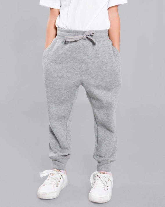 Długie spodnie sportowe dla dzieci, mankietami na dole i elastyczną talią z regulowanym sznurkiem.