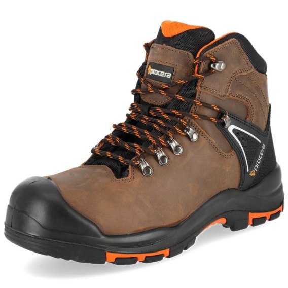 Trzewiki bezpieczne CENTAUR S3L SR HRO z kompozytowym podnoskiem ochronnym odpornym na uderzenia z energią 200 J i zgniecenia 15kN oraz kevlarową wkładką antyprzebiciową chroniącą stopę przed przekłuciem o sile 1100N. Cholewka obuwia wykonana jest z wysokiej klasy naturalnej, licowej skóry bydlęcej typu "CRAZY HORSE" o grubości min. 2,2 mm. Podeszwa antypoślizgowa, antyelektrostatyczna, olejoodporna, wykonana z poliuretanu PU i gumy. Odporność spodów na kontakt z gorącym podłożem HRO na temperatury do 300'C. Klasa odporności na poślizg SR. Absorpcja energii w części piętowej.Komfortowa, anatomiczna wkładka z pianki poliuretanowej typu Hi-Poly. Wyściółka z oddychającego materiału 3D Sandwich. Wysoki miechowy język z materiału OXFORD. Elementy odblaskowe zwiększające bezpieczeństwo. Nadlany gumowy nosek chroni przed uszkodzeniami mechanicznymi. Komfortowa wkładka typu Hi-Poly. Kategoria S3L SR HRO. EN ISO 20345:2022. Dostępne w rozmiarach: 39 - 47.