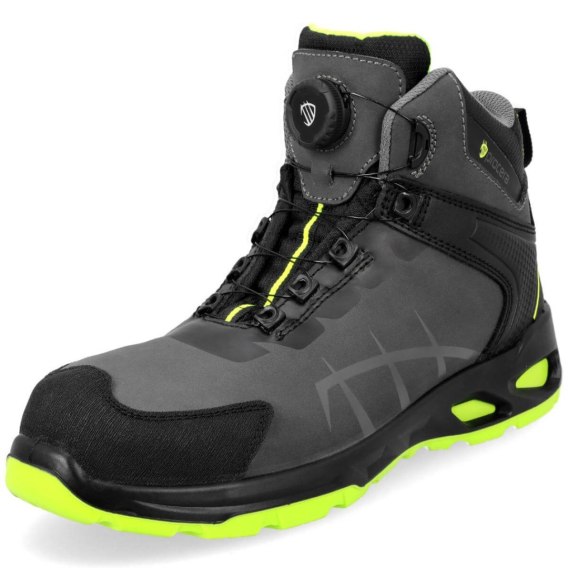 Trzewiki bezpieczne NEXO HIGH S3S z systemem sznurowania SPINPRO. Wykonane ze skóry nubukowej, ze stalowym podnoskiem ochronnym oraz kevlarową wkładką antyprzebiciową. Podeszwa z dwugęstościowego poliuretanu PU/PU, antyelektrostatyczna, antypoślizgowa i olejoodporna. Absorpcja energii w części piętowej. Komfortowa, miękka, elastyczna wkładka z pianki z włókien organicznych o wysokich właściwościach absorbcji wstrząsów, oddychających i przeciwpotnych. Wyściółka z materiału o właściwościach higroskopijnych i wentylujących. Wysoka cholewka zapewnia dodatkową stabilizację i ochronę kostki. Wzmocnienie czubków zapobiega przetarciom i uszkodzeniom mechanicznym. Kategoria S3S SR. Spełnia wymagania normy EN ISO 20345:2022. Dostępne w rozmiarach: 39 - 47. Pakowanie: 1/10 karton.