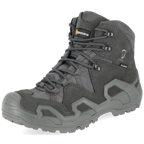 Trzewiki Procera Explorer z membraną WATERPROOF. Komfortowe i wytrzymałe, zaprojektowane do uniwersalnego wykorzystania jako but taktyczny, ale i w trakcie wszelkich aktywności turystycznych oraz codziennych zajęć. Cholewka wykonana z wysokiej jakości skóry zamszowej zestawionej z tkaniną OXFORD i membraną wodoszczelną zapewniającą komfort również w trudnych warunkach atmosferycznych. Podeszwa poliuretanowo-gumowa zapewnia pewny krok na każdej nawierzchni, a system amortyzacji EVA pod piętą pozwala na długi czas komfortowego użytkowania. Wysokie, gumowe osłony pięty i czubka buta chronią przed uderzeniami i uszkodzeniami. Miechowy język zapobiega wpadaniu piasku i żwiru. Rozmiary: 40-47