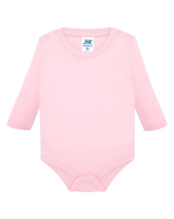 Body dziecięce z długim rękawem. Wykończenie pod szyją - lycrą. Zapinane na ramieniu i w kroku. Ściągacz 1x1. 100% bawełna.