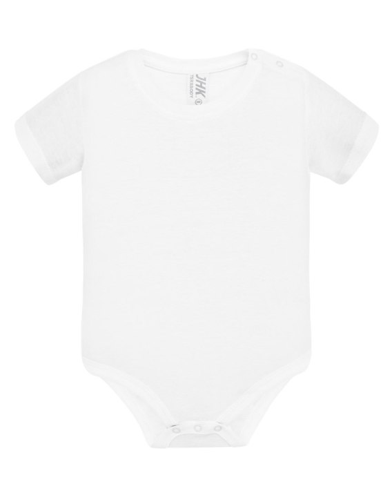 Body dziecięce z krótkim rękawem. Wykończenie pod szyją - lycrą. Zapinane na ramieniu i w kroku. Ściągacz 1x1. 100% bawełna.