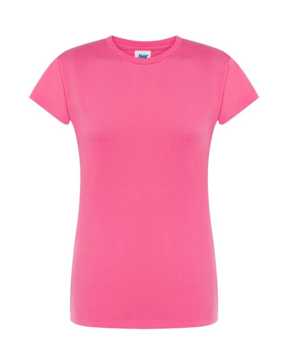 T-shirt damski z krótkim rękawem. Krój dopasowany do sylwetki. Ściągacz przy szyi. Szwy boczne. Podwójne szwy na ramionach i spodzie koszulki. Łatwo usuwalna metka. 100 % bawełna.