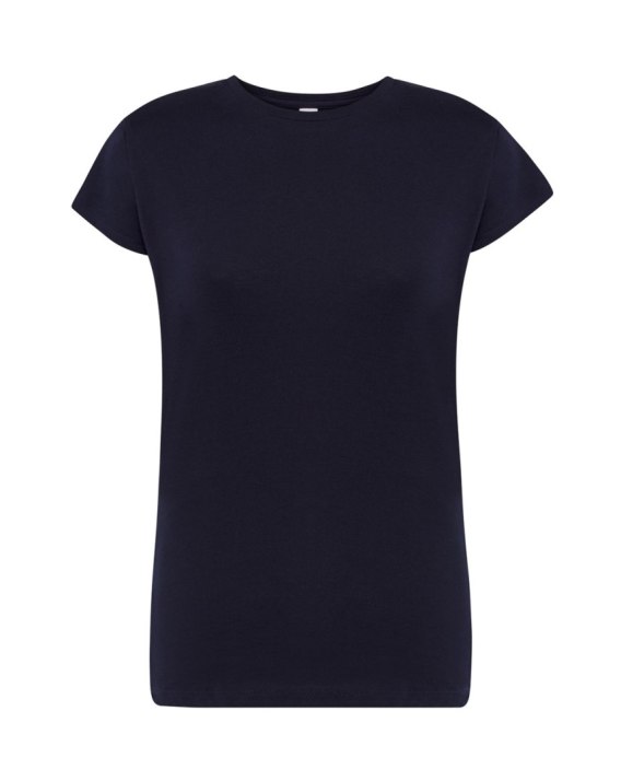 T-shirt damski z krótkim rękawem. Krój dopasowany do sylwetki. Ściągacz przy szyi. Szwy boczne. Podwójne szwy na ramionach i spodzie koszulki. Łatwo usuwalna metka. 100 % bawełna.