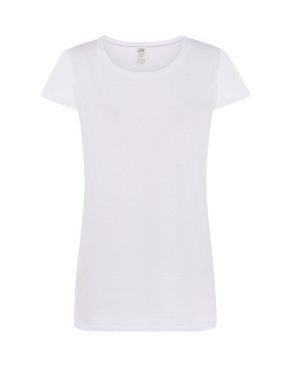 Bluzka damska z krótkim rękawem. Single jersey. Rękawy obszyte, szeroki okrągły dekolt.