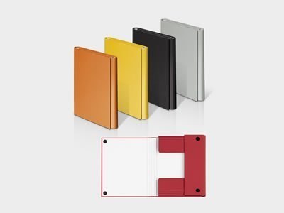 _wykonana z twardej tektury o grubości 2 mm__kolorowa oklejka, pokryta folią polipropylenową__wyklejka papierowa__do formatu A4 lub A5__szerokość grzbietu do 40mm__zamykana na 2 rzepy