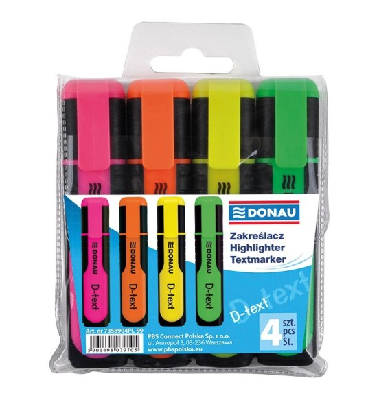 Nazwa B2B Zakreślacz DONAU D-Fish, komplet 4szt w etui