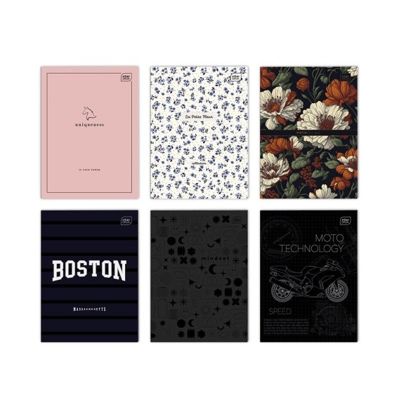 Zeszyt__okładka pokryta lakierem UV__zaokrąglone rogi (format A5)__bogata kolorystyka i duża_różnorodność wzorów okładek__jednostka sprzedaży 1 sztuka